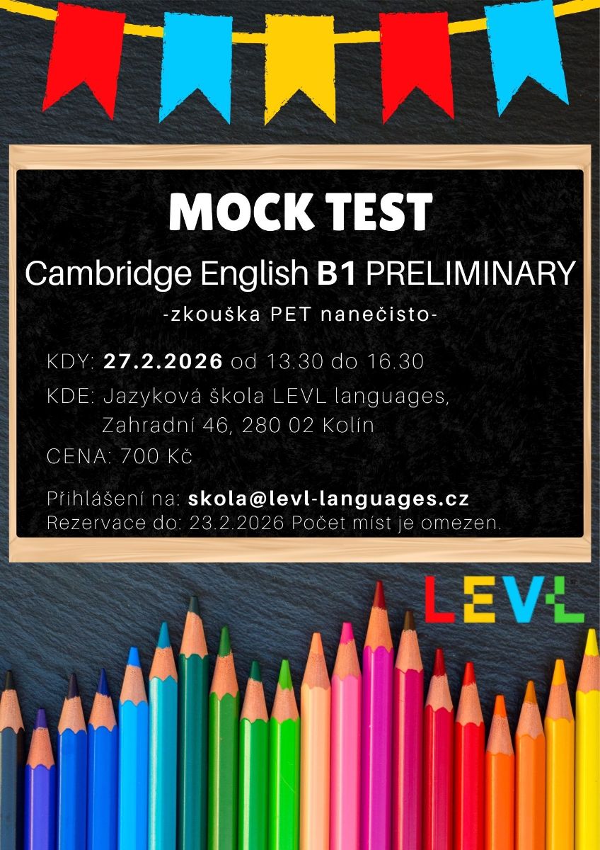 Na konec února jsme pro Vás připravili Cambridge English B1 zkoušku na nečisto.